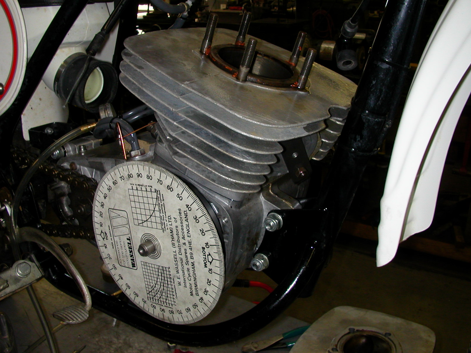 The best that we can imagine is that someone (who knew nothing about 2man push tests) set the compression on these 400s via a kick-start compression test. After unwittingly setting up the machine via a kicking compression test, the resulting compression ratio made kick starting near impossible. Given that, they fitted a 4pound ignition rotor so that kickstarting was possible. This is a classic case of doing two large technical wrongs, hoping to make a right. It is important to know that powerband width and power delivery of any 2stroke is a function of port timing choice and expansion chamber design. The rotating mass of the ignition flywheel is in no way connected. After analyzing these recent over-compressioned CZ400s, we reconfigured the port layout for a broad powerband, reduced the compression to 180psi, and cut the ignition rotor to 3 pounds. We would have taken more weight from the flywheels, but the flywheel construction was not known. Either way, the end result was an engine setup that was cooler running and higher revving (because of the reduced compression), and accelerated much stronger (because of the lighter flywheel) This new "lower compression" setup had great power delivery (because of the changed port timing/area layout), and very strong acceleration (because of the lighter flywheel). It was a win-win on every level. It bears noting that in 1975, we used a Snap-On gauge and a 2man push test to set Rex Staten's USGP CZ400 at 180psi ..... it was fast enough to out run Roger D.