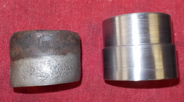The step on the alloy plug is shallow, so the "O" ring was mandatory to get a proper seal. Even with the "O" ring, the diameter in the cylinder needed to be thoroughly cleaned of carbon and oil. The two piece block-off easily clears the chassis for "in frame" pressure testing. Some versions of the CZs employ a steel sleeve for the exhaust pipe to slip over. Sadly, these stock sleeves are thin-walled, and not made of very good material. Given that, the stock sleeve is nowhere near airtight enough for pressure testing. With that, we opted to remove the battered stock sleeve and replace it with thicker chromoly sleeve. Fortunately there was enough material in the cylinder casting for us to bore to a slightly larger diameter. This increased the wall thickness of the part of the sleeve that pressed into the cylinder, The sleeve was easily port matched to the existing exhaust port. Most importantly, the new sleeve made for a 100% airtight fit to the cylinder that allowed for prefect pressure testing. We simply blocked off our new sleeve by fitting a common automotive expanding rubber freeze plug inside it.