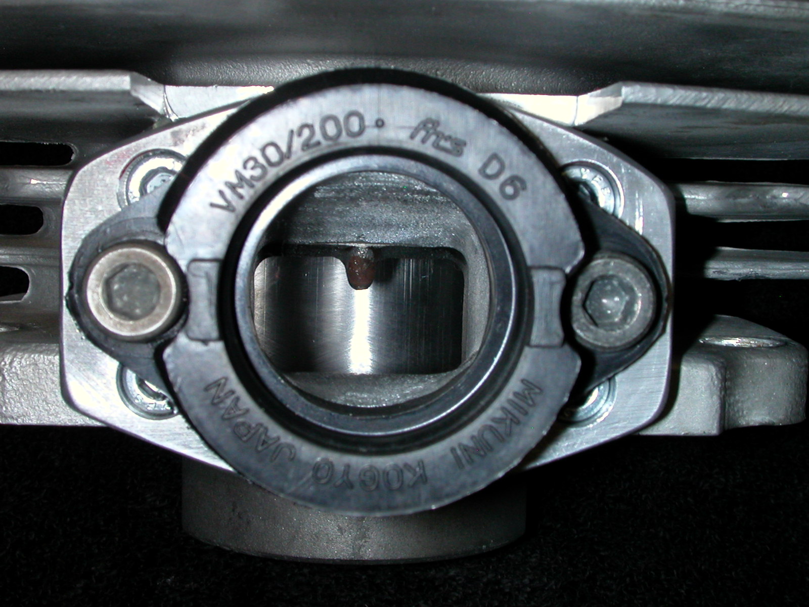 Inlet "Signal" - Every 2stroke, regardless of inlet design, shares a few basic inlet functions and needs. As the piston travels upward from bottom dead center, it creates a "negative pressure" in the lower end (engineers hate when you call it a vacuum ... but it kinda is). At the moment that the inlet port opens, a negative pressure wave travels up the inlet port to actually draw fuel though the jet circuits of the carb, as well as air in from the airbox. The lower end of each 2stroke can only create a certain amount of negative pressure, so it's important to avoid weakening that negative pressure wave. One of the worst enemies of this precious negative pressure wave is excessive inlet port volume. In a well designed reed cylinder, the engineers go to every length to reduce the inlet port volume. They move the reed cage as close to the piston as possible, and they minimize clearances between the cylinder casting and the reed cage. On top of that, there is much attention given to making the carb holder as low volume as possible, and air-guides (reed stuffers) are fitted into the reed cage itself to help preserve inlet signal.