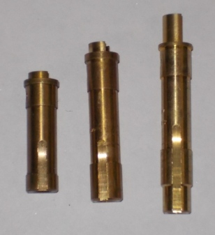 The three needle jets to the left are all the same orifice size, but they are all different “series” made to fit in different size carburetor bodies. It also bears noting that different needle jets can have varying height "atomizer stems". These atomizer stems protrude into the throat of the carb, but have different heights that accommodate slides with different base reliefs. Also note that the main-jet threads in the bottom of the needle-jet will be different between hex-type main-jets and round-type main-jets. Some tuners refer to the brass needle-jet as the "spray-bar". |