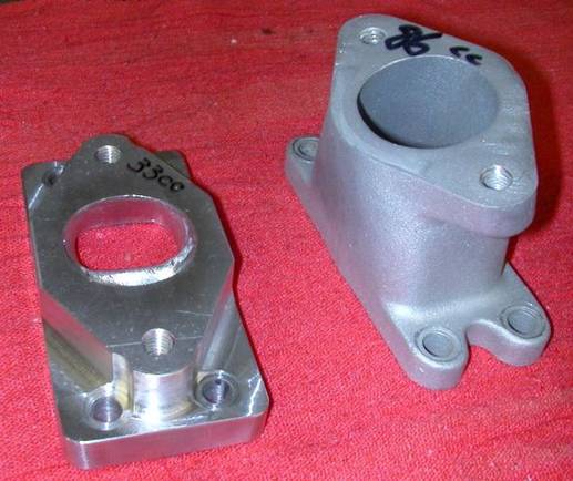 The two manifolds on the left are both for a CZ400 motocrosser. The cast manifold on the right was made very long so the carb would reach nicely to the airbox with a short rubber tube, but that added inlet-tract length significantly increased the internal volume … and that added inlet-tract volume significantly weakens inlet signal. The billet manifold on the left has a much smaller internal volume that strengthens inlet signal. The two manifolds are marked with their respective internal volumes (in cubic-centimeters). Reducing that volume by 53cc will make for a huge improvement in overall throttle response as well as much easier starting. Increasing inlet volume to make for a closer fit to the airbox is much like putting shorter shocks on an MX bike so your feet more easily reach the ground … Both “sound” like a good idea, but functionally-speaking, both are a very bad idea. The designer of this large cast manifold certainly had the best of intentions ... but sadly, not much of an understanding of the importance of inlet signal.